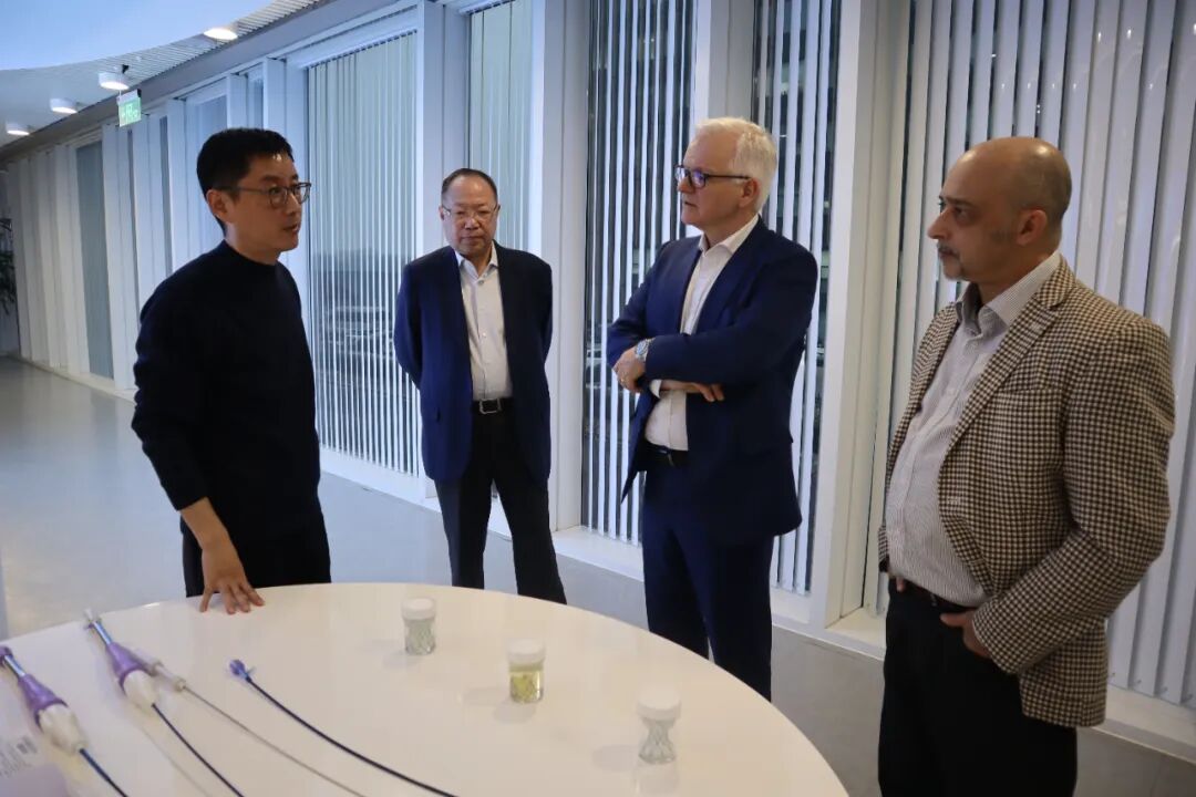 交流期间,Medistim 团队实地参观了我司的系列核心产品线,近距离了解包括射频消融系统,左心耳闭合系统及左心耳封堵系统、经导管肺动脉瓣膜系统等产品的主要特点与技术优势。在座谈环节,双方就相关手术产品在不同市场应用现状、拓展前景及挑战深入交换了意见,尤其对未来在中国大陆市场的潜在合作开展了初步沟通与讨论,并且双方均有意愿在欧洲市场探讨合作机会。