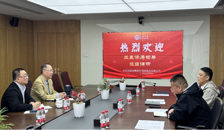 3月26日,顺义区医保局孙雪松局长、杜禹科长莅临迈迪顶峰开展实地调研,深入了解企业创新医疗器械发展现状,倾听企业发展诉求,为公司创新产品市场化推进及业务拓展赋能助力。北京首都国际机场临空经济区管委会领导陪同,公司董事长孟坚先生、运营副总裁张峥先生参与调研及座谈。